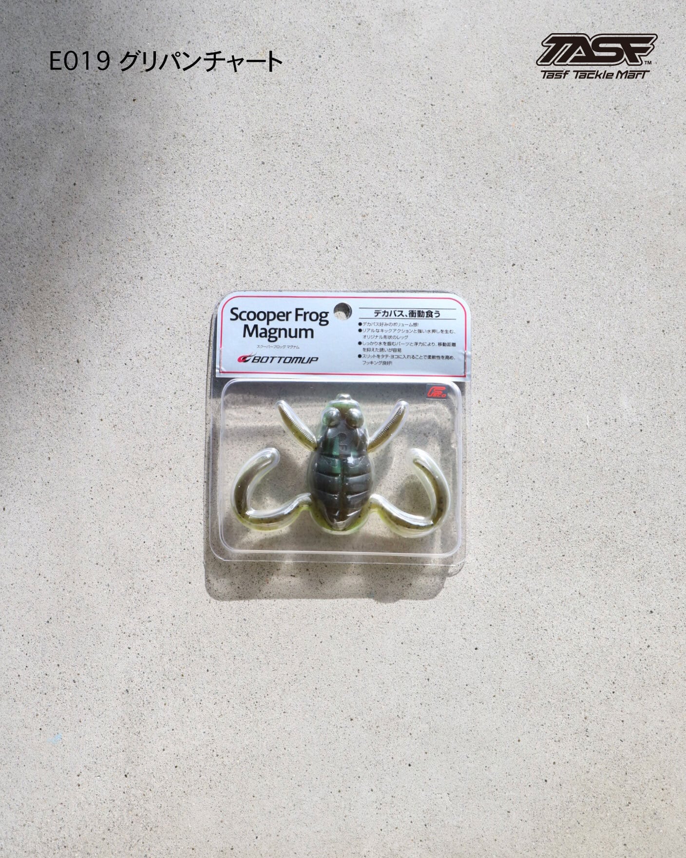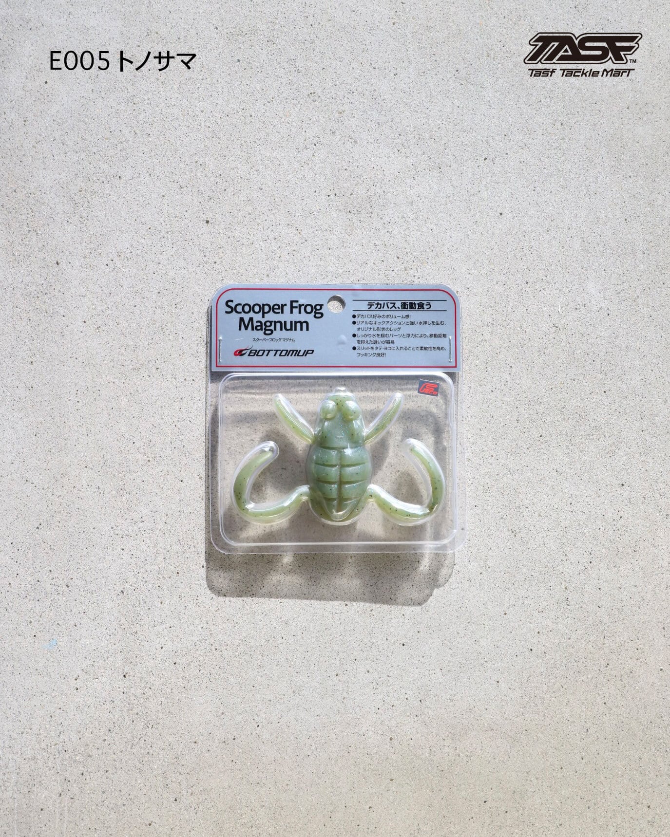 陸っぱりのプリンスこと川村光大郎氏 率いる Bottomup社「Scooper Frog Magnum (スクーパーフロッグマグナム) 」 全国でデカバスを狂わせ続けているボトムアップ社のスマッシュヒットアイテム ワームですがハードルアー並の満足度で尚且つ釣れるという カエル型ワームの金字塔になるかもしれない存在 それが「スクーパーフロッグマグナム」 使い方などは色んな方がYou Tubeで発信しているのでそちらをご参考に。 エラストマー素材なので他のワームと一緒にすると溶けてしまうので注意してください! ■重さ 24g ■入り数 1匹 ■素材 エラストマー
