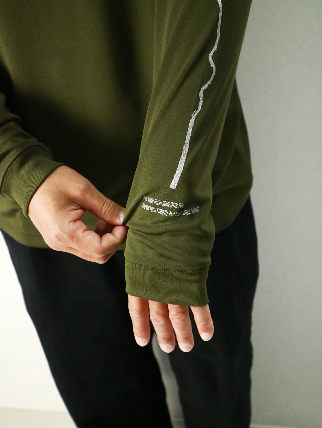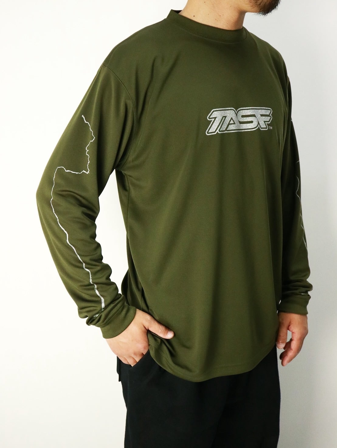 ボディはスミクロのようなカラーにシルバーメタリックプリントでシルクスクリーンプリントを施しています。
